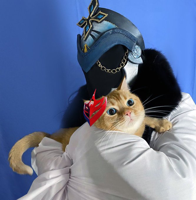 the captain does not hug Tartaglia very much because his whole beautiful black suit will be red #GenshinImpact #tartaglia #cosplay