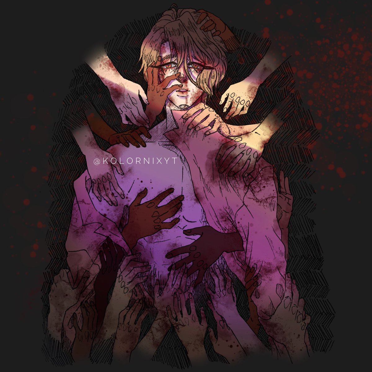 Day 11: Sinking #vicetober #vicetober2021 I AM SICK AGAIN but getting better now. 🙃 That’s why haven’t posted in a bit so apologies for that. Anyway, I thought I’d draw Asmo sinking further into his sin. Heh heh… #obeyme #obeymeasmodeus #yandere #inktober #inktober2021