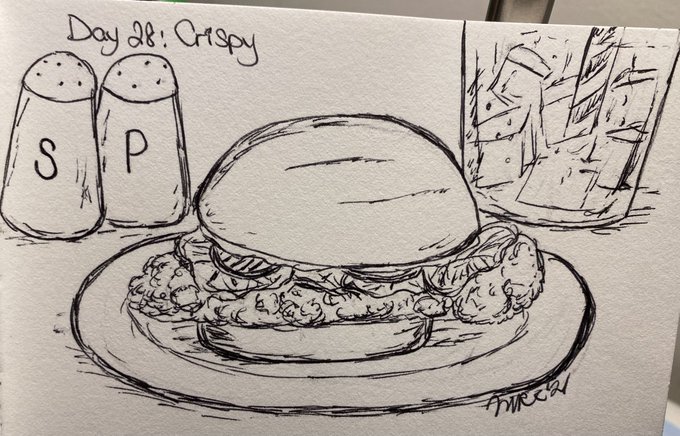 Day 28: Crispy #inktober21 #inktober2021 The only drawback to drawing this is that I now want a crispy chicken sandwich, instead of what I have in the crockpot. 🤤😂