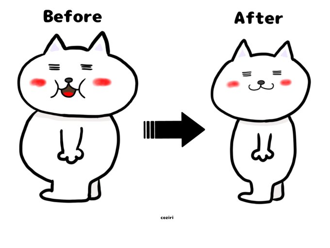 ダイエットに成功したから、ビフォーとアフターを比べる白猫。 #白猫 #白ネコ #ネコ #ネコのイラスト #白猫お絵描き #猫好きさんと繫がりたい #イラスト好きさんと繋がりたい #絵描きさんと繋がりたい #ビフォーアフター