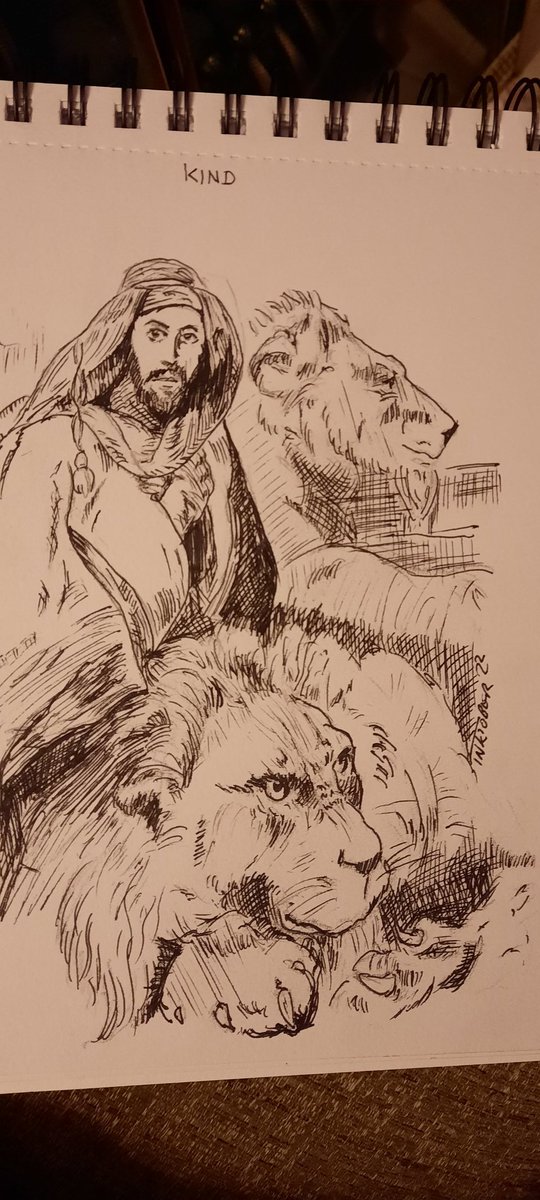 #inktober2022 #inktoberday13 #inktober hint was "Kind" so here's Androcles being kind and pulling thorns out. #penandink #inkdrawing