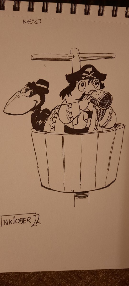 #inktober2022 #Inktober day 9 prompt "nest" so here's #captainpugwash in the crows nest with a crow... #inkdrawing #penandink