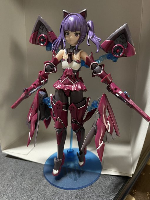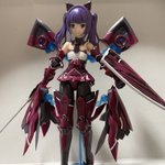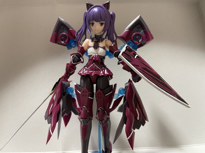 先日紛失したパーツが届いたので組み込んで完成! メガミデバイスの一条綾香さま!! 決死の筆塗り&ガンダムマーカー塗装 4度塗りくらいしたのでやっぱサフは偉大(隠蔽力ェ…) #メガミデバイス #アリスギア