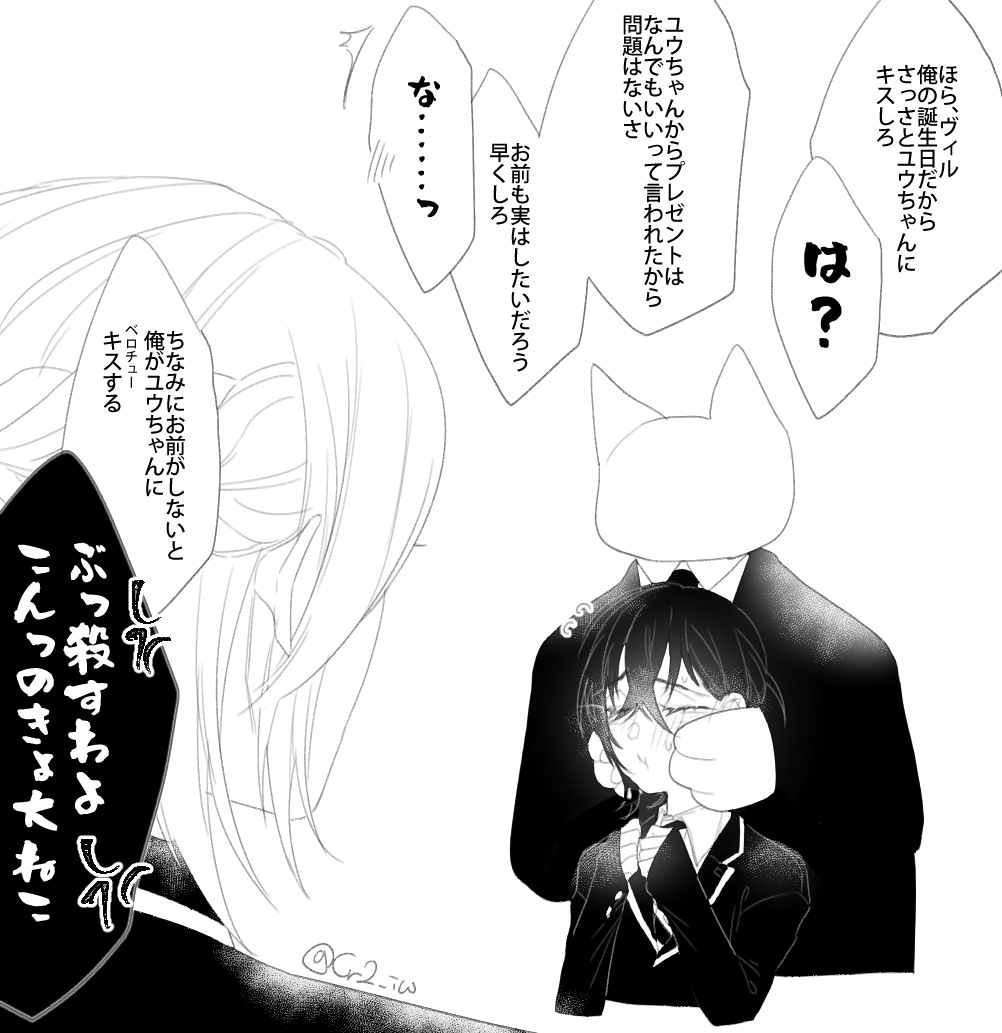 🦇 可愛い服とかないからセーターでなんとか 👑と🦇のヘアアレンジはただ俺が見たかっただけです あとこのタグ、リプだけじゃなくマロでもおkです確認が遅れるかも知れませんが #ツイステファンアート #リプきたキャラに自分の私服を着せる