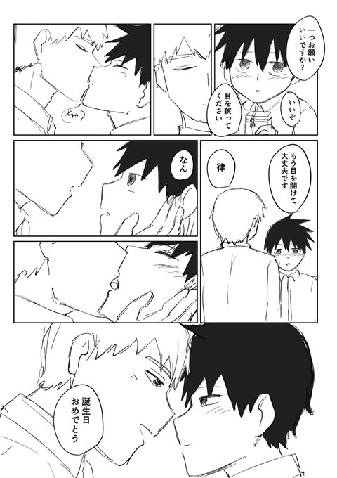 13 44 遅刻すみません 霊律でお題「誕生日」描かせていただきました #律受け深夜の60分一本勝負 22/07/03 00:08