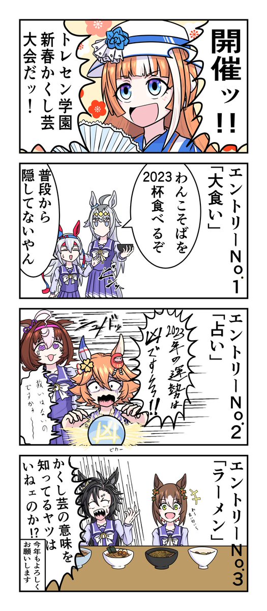 84 325 新年ウマ娘4コマ漫画 『かくし芸』 #ウマ娘 #ウマ娘プリティーダービー 23/01/05 19:02
