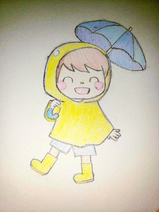 あめふり #鉛筆 #色鉛筆 #イラスト