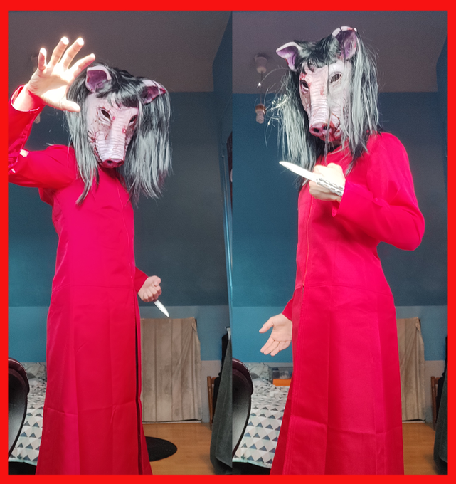 One year ago, I had the chance to be able to cosplay my absolute favorite character in @Saw and @DeadByBHVR, Amanda Young aka The Pig! I'm still trying to get my hands on a new blade and reverse bear trap but there it is! #DeadbyDaylight#Saw#Cosplay#Horror#HorrorCosplay