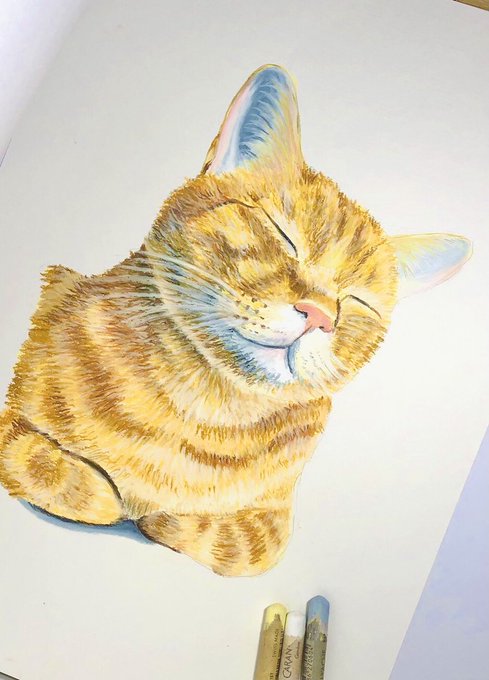 𓍯 今日見つけた眠たそうな猫さんをクレヨンで描いてみました🌸☺️ 𓍯 #絵 #イラスト #猫 #おしゃれ #絵描きさんと繋がりたい #イラスト好きな人と繋がりたい #いいねした人全員フォロー #フォローバック #RT #背景 #絵柄が好みって人にフォローされたい