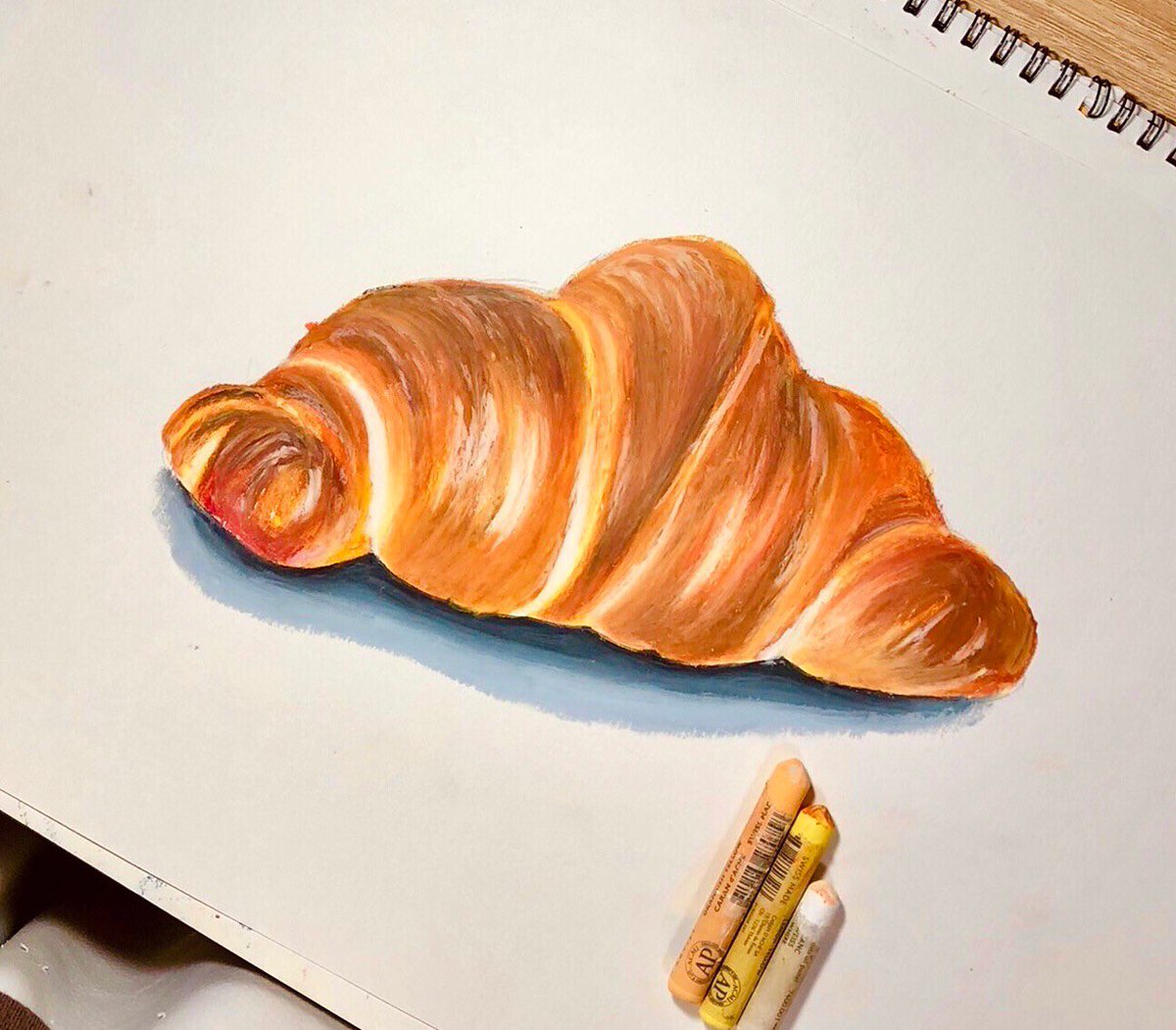 𓍯 今日はお昼に美味しいクロワッサンをいただきましたので、クロワッサンをクレヨンで描いてみました🌸☺️ 𓍯 #絵 #イラスト #パン #スイーツ #おしゃれ #絵描きさんと繋がりたい #イラスト好きな人と繋がりたい #いいねした人全員フォロー #絵描きさんフォロバ100 #絵描きさん交流会