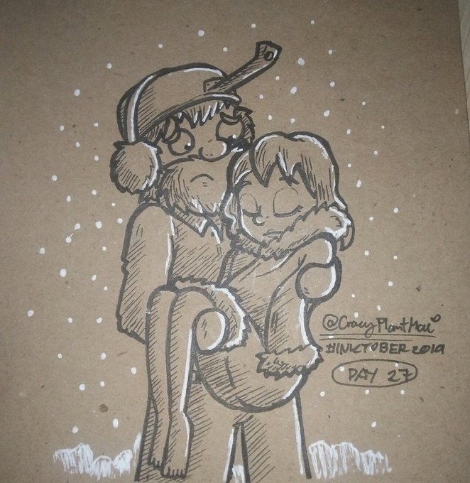 #Inktober2019 Day 27: "Coat" Yeah... I ship them too hard. #CrazyDaveXMatilda #inktoberday27 #pvz #pvza
