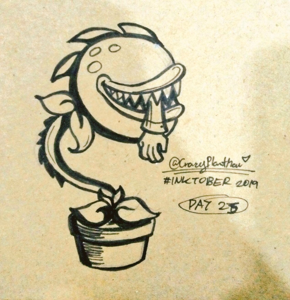 #Inktober2019 Day 25: "Tasty Zombies" Just Chomper. He took a lot of time to finish his meal. #pvz #inktoberday25