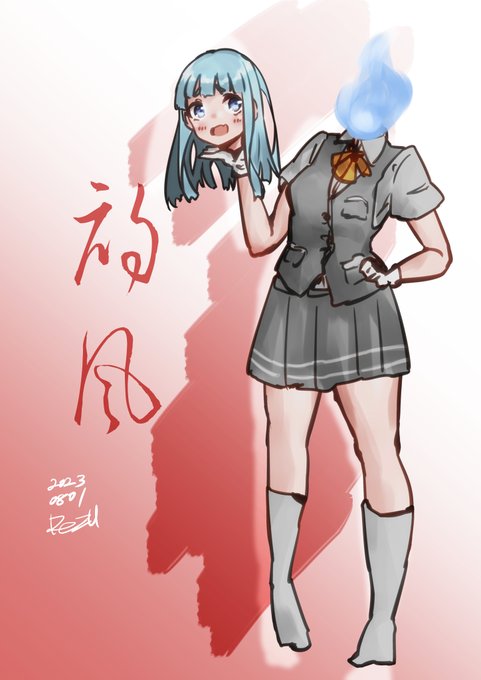 #艦これ版真剣お絵描き60分一本勝負_20230801 #艦これ版深夜の真剣お絵描き60分一本勝負 初風ちゃんです(*'▽') 8月もよろしくです(*´ω`*)