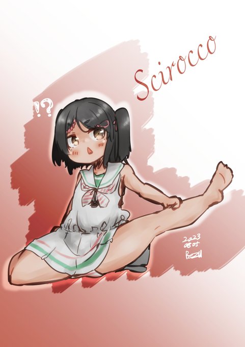 #艦これ版真剣お絵描き60分一本勝負_20230805 #艦これ版深夜の真剣お絵描き60分一本勝負 Sciroccoちゃんです(*'▽')