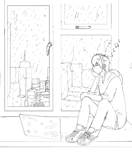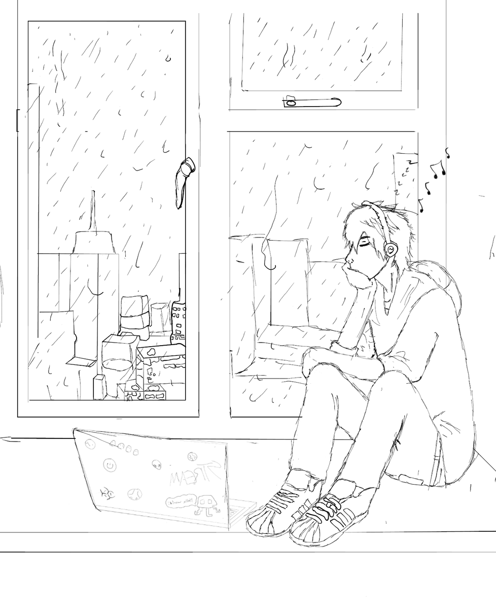 Inktober - Day 21: Sleep. Been listening to @Corpse_Husband's 'Agoraphobic' a lot today. Such a mood, so it kinda inspired today's art. (I'm still a terrible artist) #inktober #inktober2020 #rainvibes