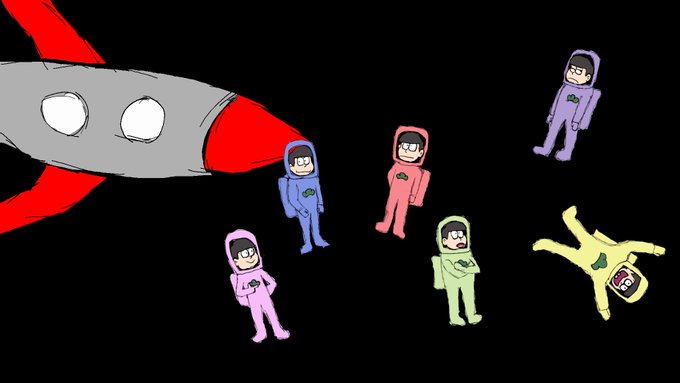 Inktober - Day 16: Rocket. I kinda became lazy artist. Figured I'd merge Osomatsu with Among Us. #inktober #inktober2020 #osomatsu #osomatsusan #amongus
