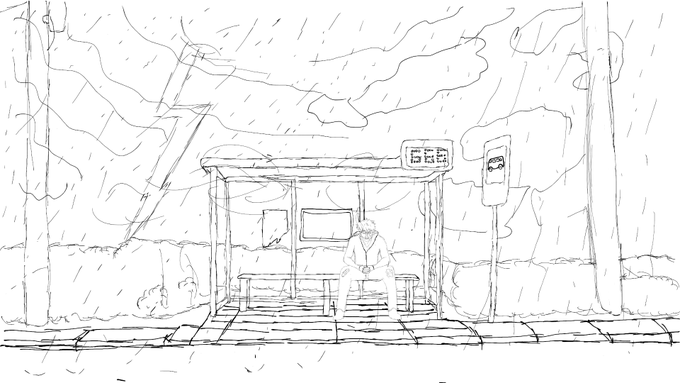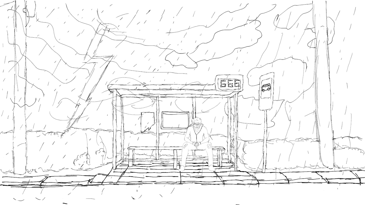 Inktober - Day 17: Storm. I'm late at this, but I finally did something. Will defo come back to make this better kinda rushed it. Recently discovered @Corpse_Husband (defo check him out on Youtube) so here's him sat at a creepy bus stop during a storm #inktober #inktober2020