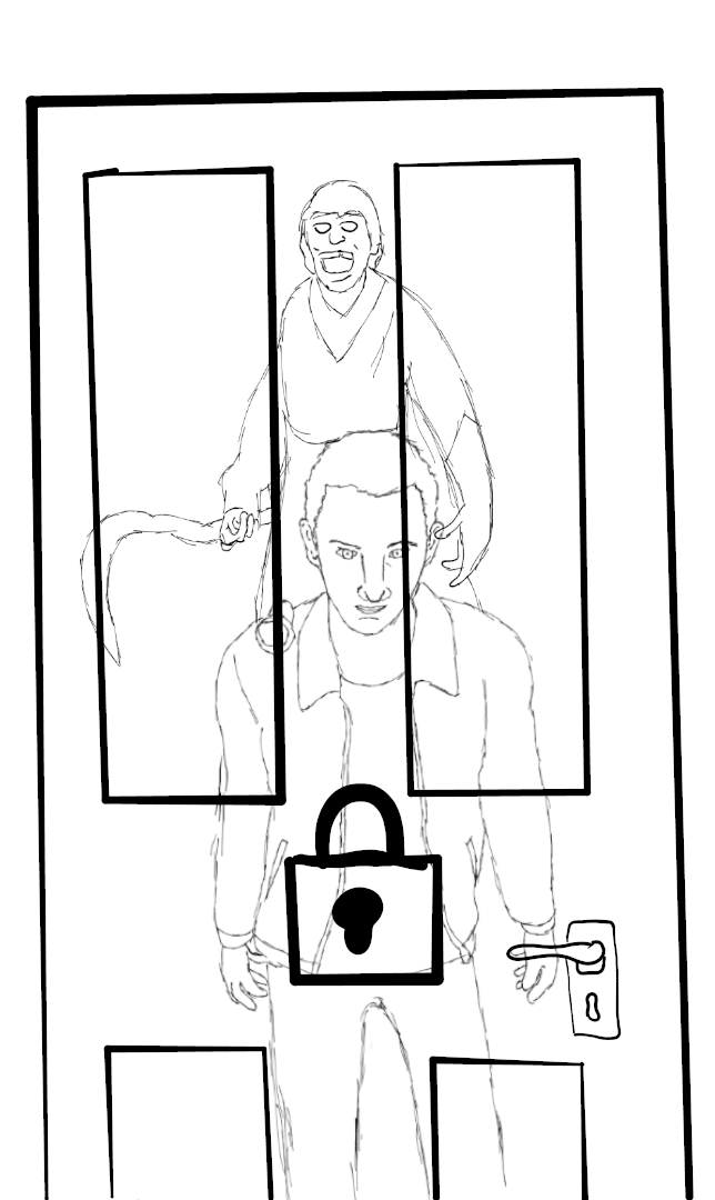 Oof, I'm surprised I'm still doing this. Inktober - Day 18: Trap. The horror of the door locking, trapping you with the ghost in Phasmophobia. #inktober #inktober2020 #phasmophobia