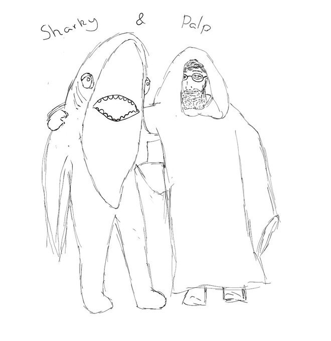 Inktober 2020 - Day 25: Buddy. Just two buddies hanging out. Attempted to draw the greatest duo - Sharky and Palp. @Bedgarsan @Angory_Tom #inktober2020 #Inktober #sharkyandpalp #ITried #yogscast #fanart