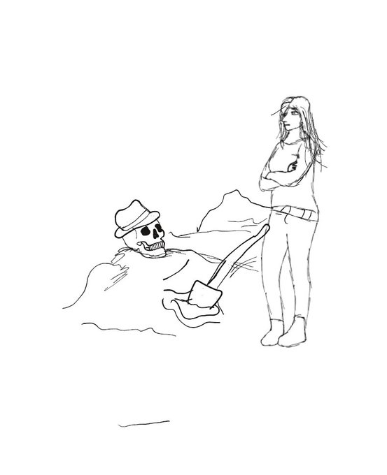 Inktober 2020 - Day 24: Dig. (I know, it's a day late). Skulduggery got buried and Valkyrie unfortunately has to come and dig him out. #inktober #inktober2020 #skulduggerypleasant #fanart