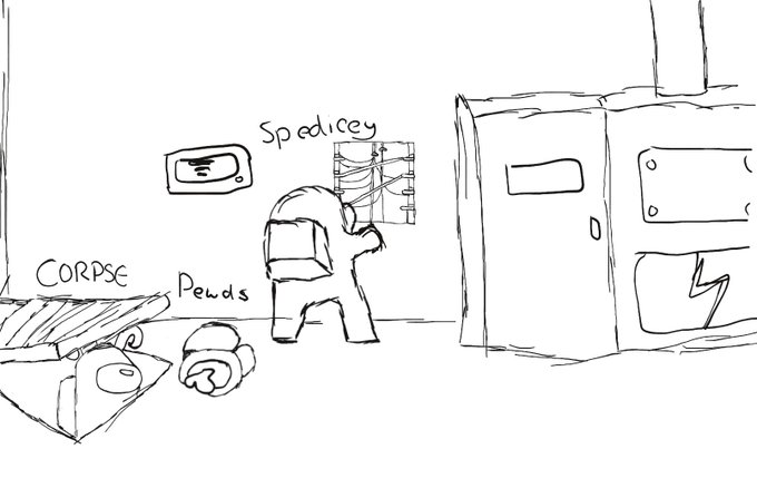 Inktober 2020 - Day 26: Hide. Quick doodle of Corpse hiding in vents after killing Pewds, waiting to blame Spedicey. "I'M JUST TRYING TO DO WIRES!" #inktober #inktober2020 #fanart #corpsehusbandfanart #pewds #spedicey