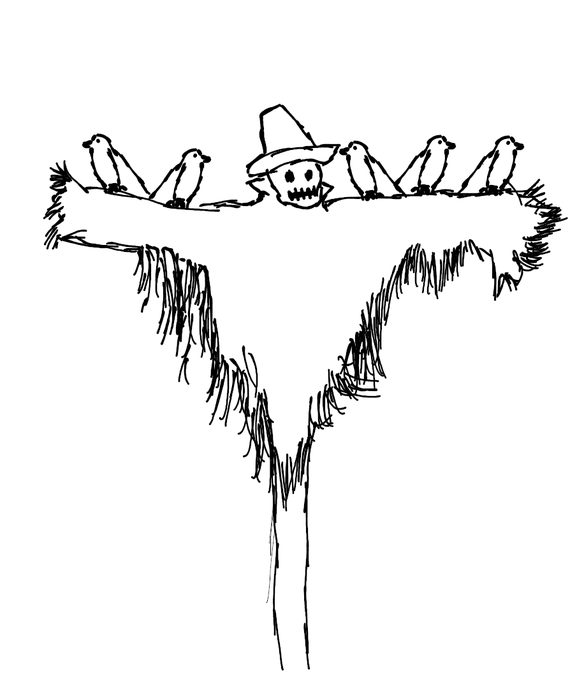 Inktober 2020 - Day 30: Ominous. A day late, but a quick doodle of a spooky scarecrow with crows on it. #inktober #inktober2020