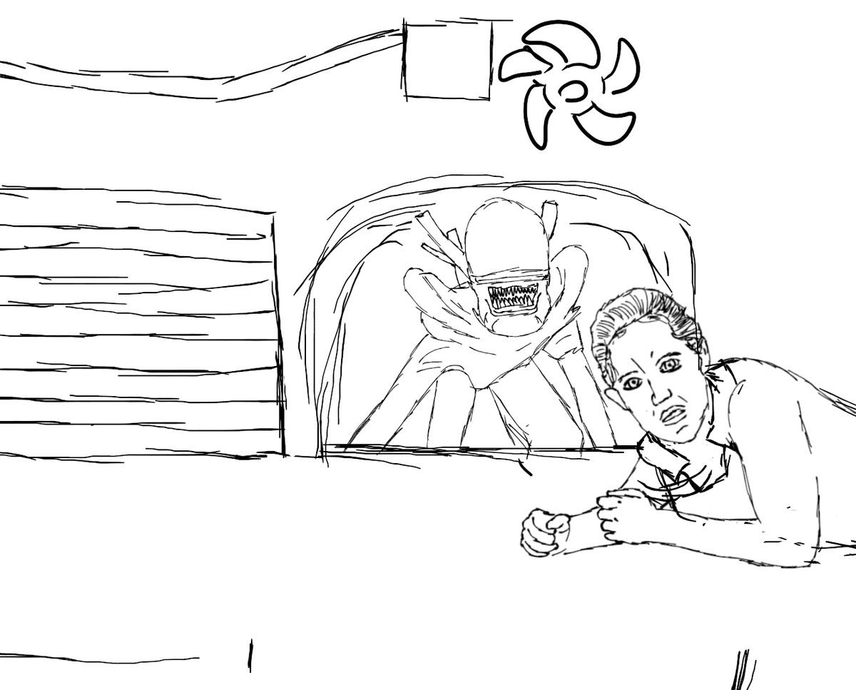Inktober 2020 - Day 31: Crawl. Can't believe we've made it to the end. Since Game Grumps started playing Alien: Isolation, I couldn't resist attempting to draw Amanda Ripley crawling through vents not realising the alien behind her. #inktober #inktober2020 #alien #AlienIsolation