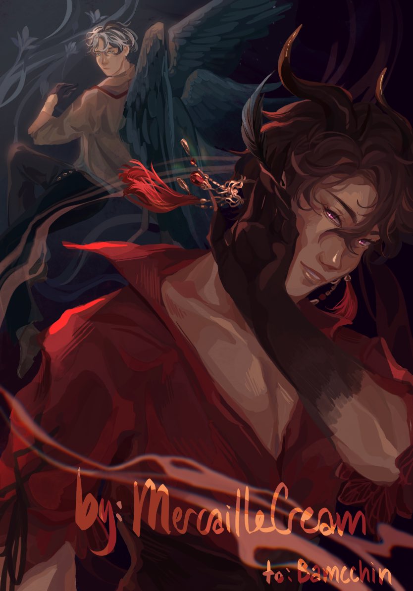 Twenty-first attack for @/Bamcchin! (Will be tagged below) Cain and Azrael 🪶 #Artfight2022 #artfight #TeamBloom