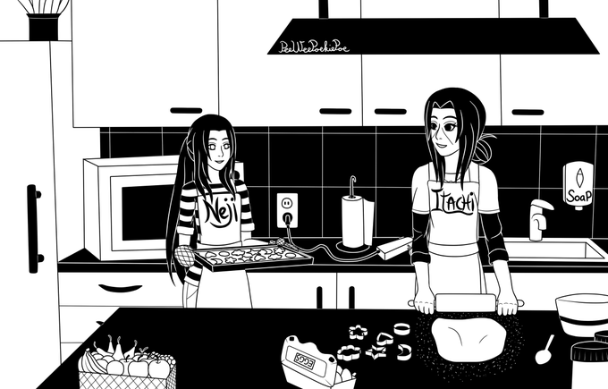 ItaNeji Fantober 2020, Day 9 - Baking #Fantober2020 #inktober2020 #ItaNeji #NarutoShippuden #itachi #neji #itachiuchiha #nejihyuga #narutofanart #digitalart #blackandwhiteart #digitalartwork #shonenai
