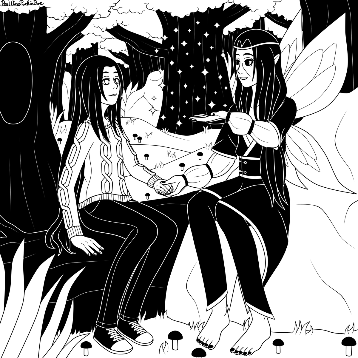 ItaNeji Fantober 2020, Day 12 - Enchanted Forest #Fantober2020 #inktober2020 #ItaNeji #NarutoShippuden #itachi #neji #itachiuchiha #nejihyuga #narutofanart #digitalart #blackandwhiteart #digitalartwork #shonenai