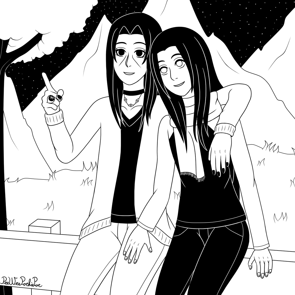 ItaNeji Fantober 2020, Day 15 - Star Gazing #Fantober2020 #inktober2020 #ItaNeji #NarutoShippuden #itachi #neji #itachiuchiha #nejihyuga #narutofanart #digitalart #blackandwhiteart #digitalartwork #shonenai
