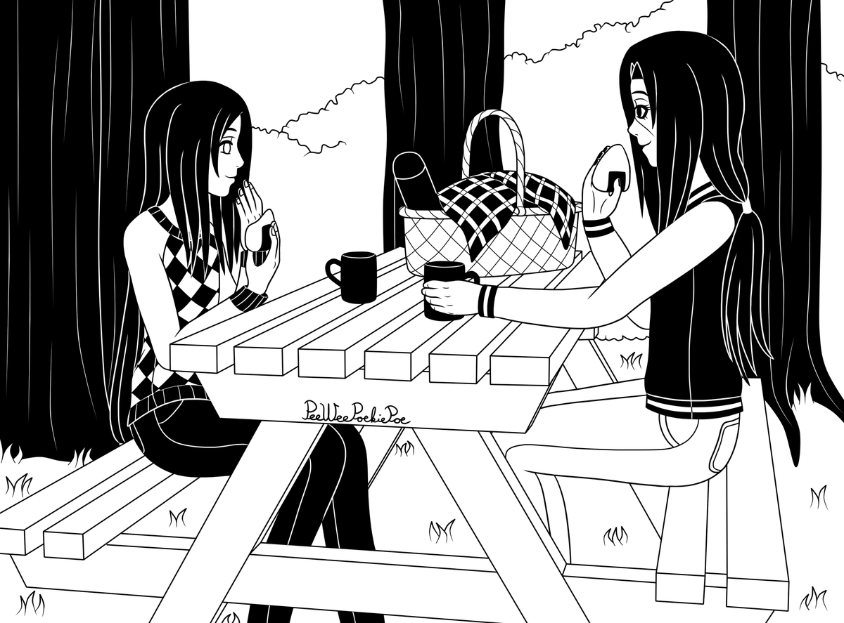 ItaNeji Fantober 2020, Day 24 - Picnic #Fantober2020 #inktober2020 #ItaNeji #NarutoShippuden #itachi #neji #itachiuchiha #nejihyuga #narutofanart #digitalart #blackandwhiteart #digitalartwork #shonenai