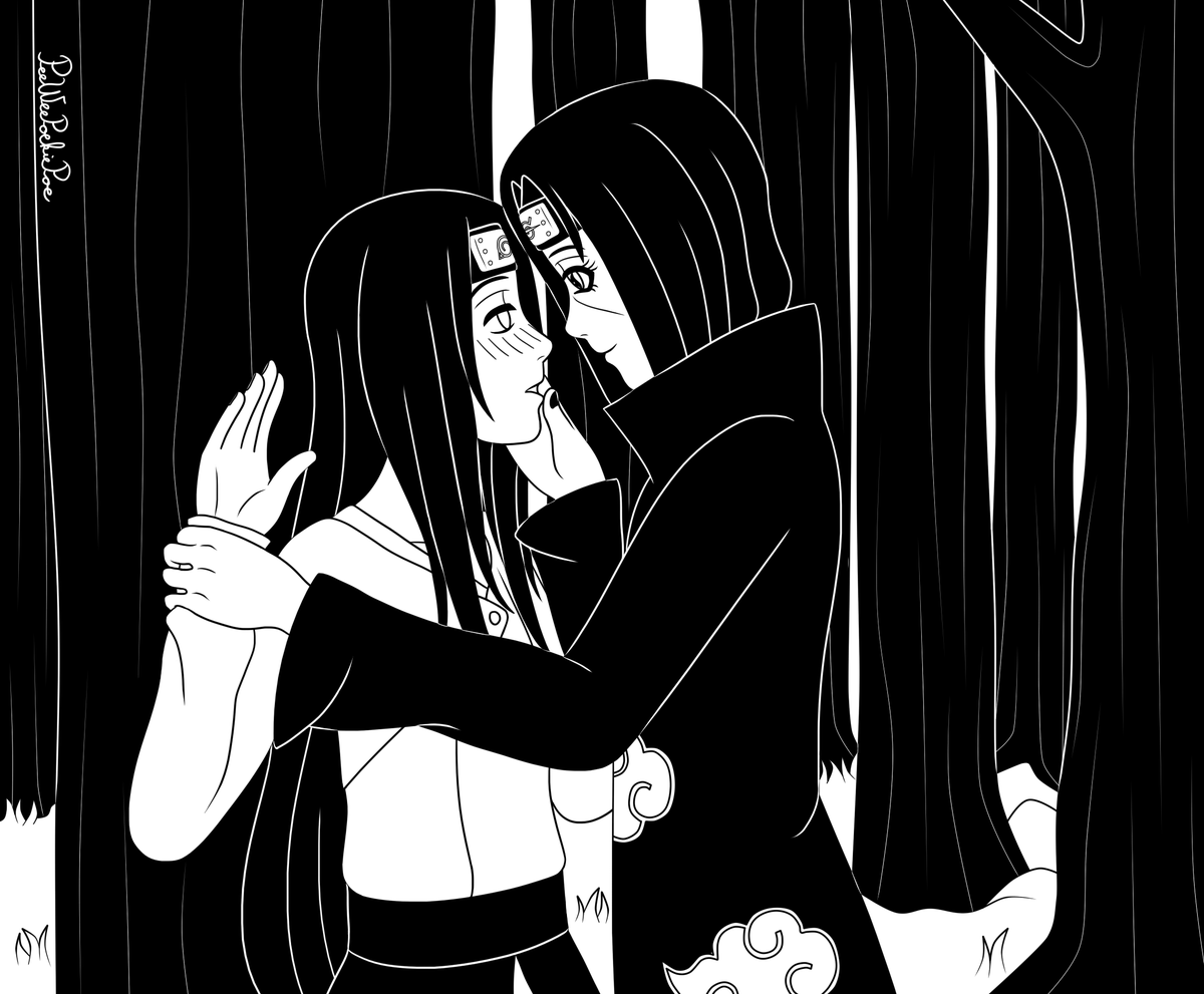 ItaNeji Fantober 2020, Day 10 - First Kiss #Fantober2020 #inktober2020 #ItaNeji #NarutoShippuden #itachi #neji #itachiuchiha #nejihyuga #narutofanart #digitalart #blackandwhiteart #digitalartwork #shonenai