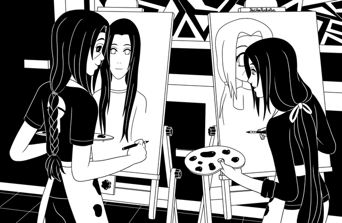 ItaNeji Fantober 2020, Day 26 - Art Class #Fantober2020 #inktober2020 #ItaNeji #NarutoShippuden #itachi #neji #itachiuchiha #nejihyuga #narutofanart #digitalart #blackandwhiteart #digitalartwork #shonenai