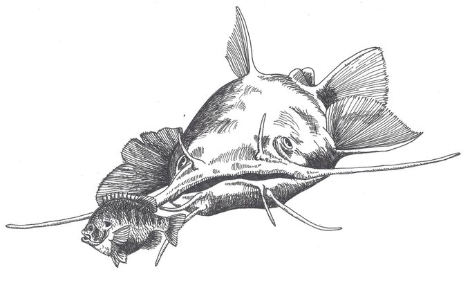 A Flathead Catfish making a Bluegill go “UH-OH” for the #Inktober Day 29 Word Prompt. @inktober #inktober2022
