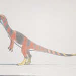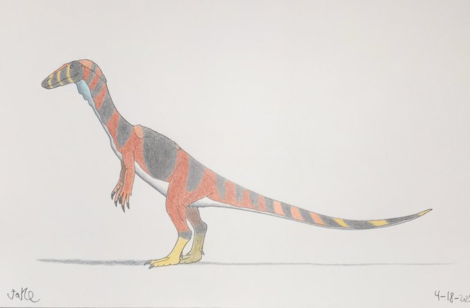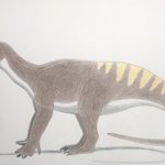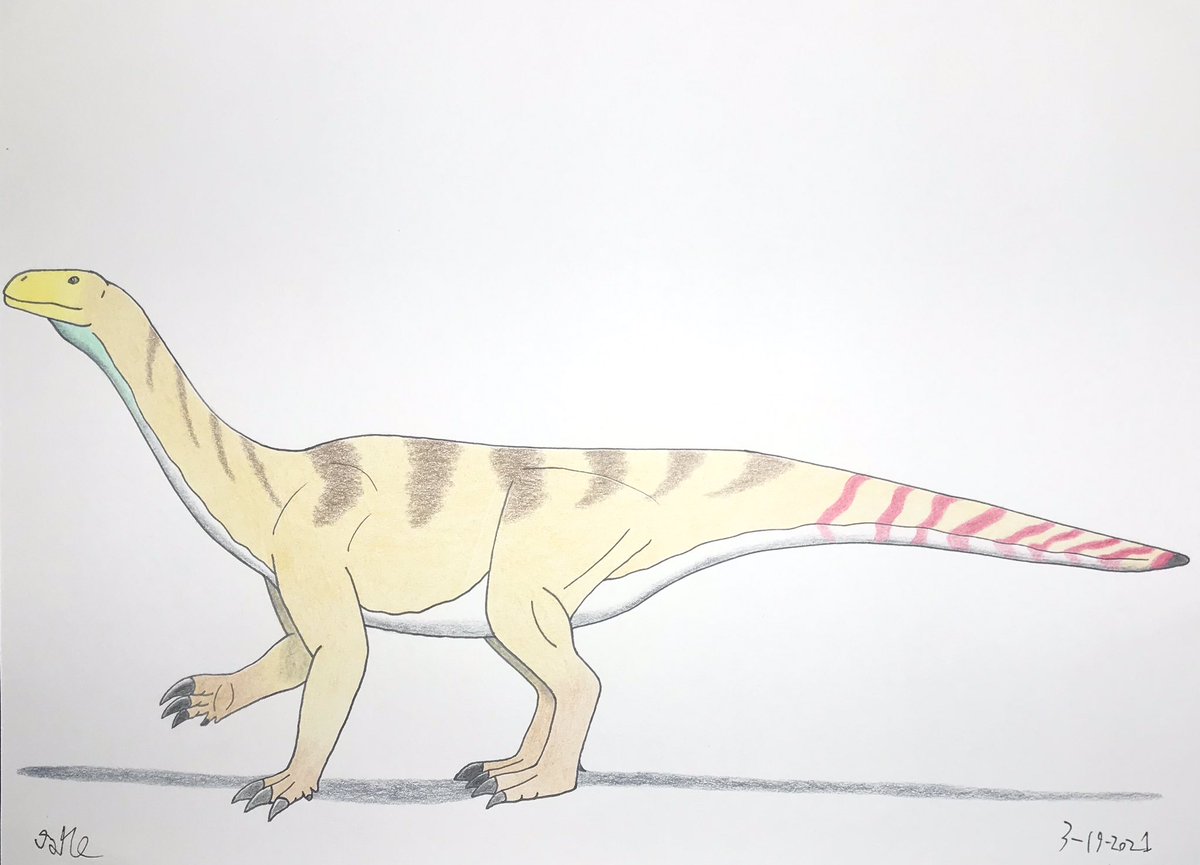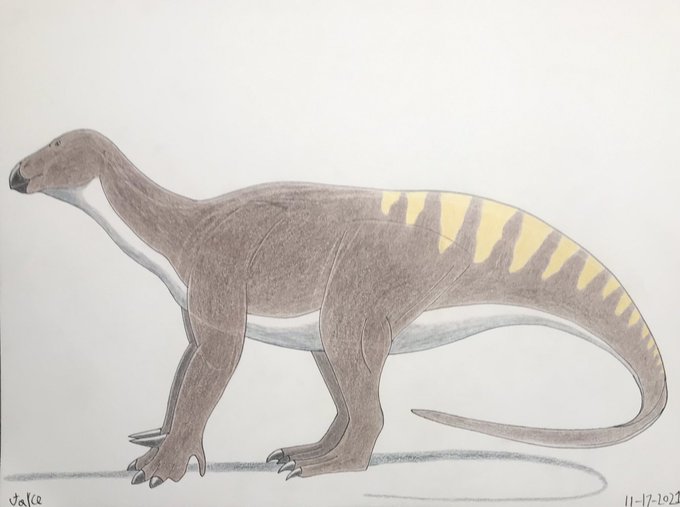 Here is a bigger version an Iguanodon bernissartensis, with the muted striped brown pattern, that I finished yesterday. #iguanodon #paleoart