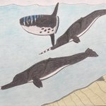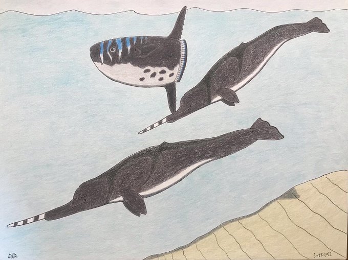 Yesterday I finished this simple scene of a Ranzania grahami swimming next to a pair of Eurhinodelphis longirostris. #paleoart #calvertformation #Ranzaniagrahami #Eurhinodelphislongirostris