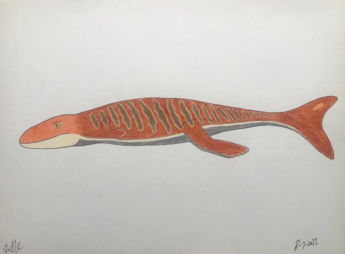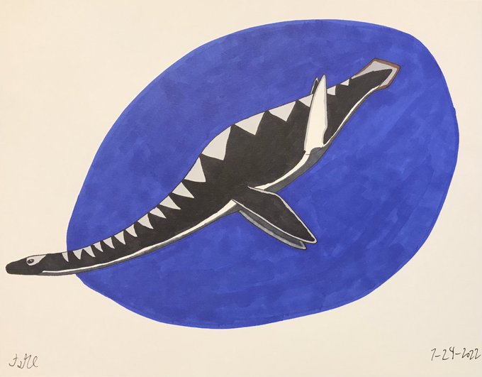 Here is a marker illustration of an Ophthalmothule cryostea I made yesterday. I like this one better then the previous one I made. #paleoart #plesiosaur