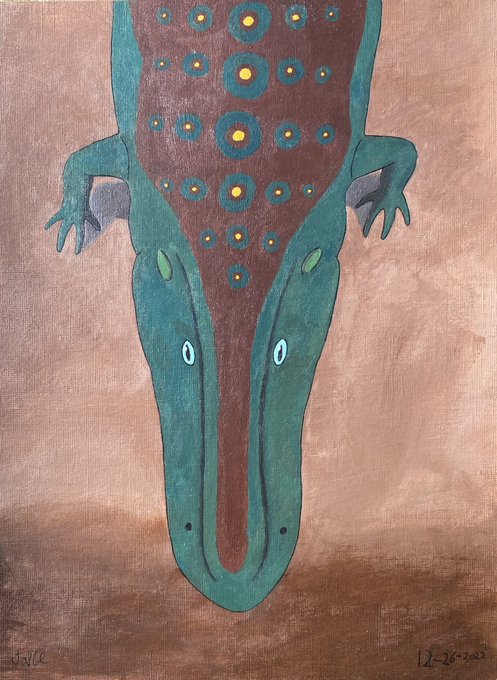 Here is an art card I finished yesterday of a Serpentisuchops pfisterae. #paleoart #serpentisuchops