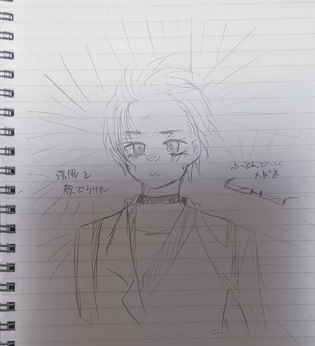 強風を顔に受けたやんさん(10分クオリティ) #しろっぽ