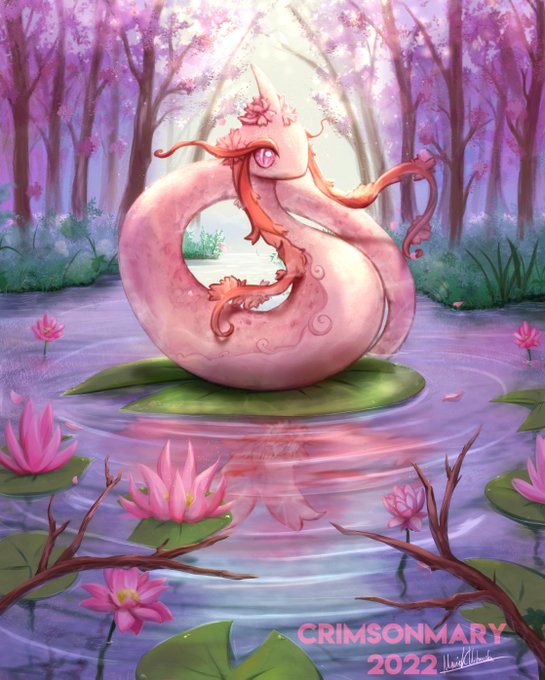 Cherry Milotic Fanart ~ I really wanted to doodle Pokemon to relieve some stress. #PokemonFanart #PokemonArt #ArtistOnTwitter