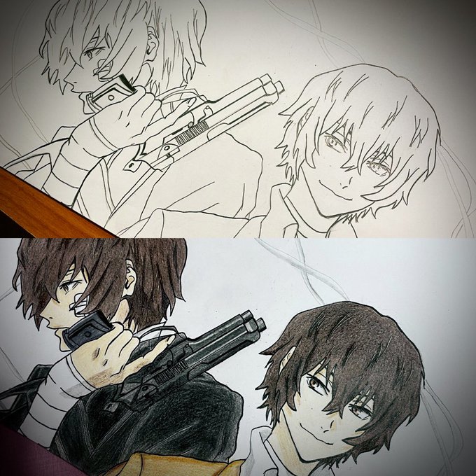 “En la superficie siempre mostraba un rostro sonriente; por dentro mantenía una lucha desesperada” Con motivo del cumple de Dazai, vuelvo a subir este dibujo que hice hace un tiempo🎨 #BungouStrayDogs #6月19日は包帯無駄遣い装置の誕生日