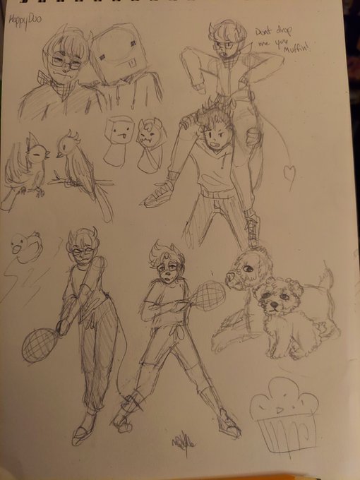Happyduo art cause I felt like it. I feel like they have a dedicated page to them in every sketchbook I've had since getting back into mcyt -- #happyduofanart #happyduo #badboyhalofanart #skeppyfanart