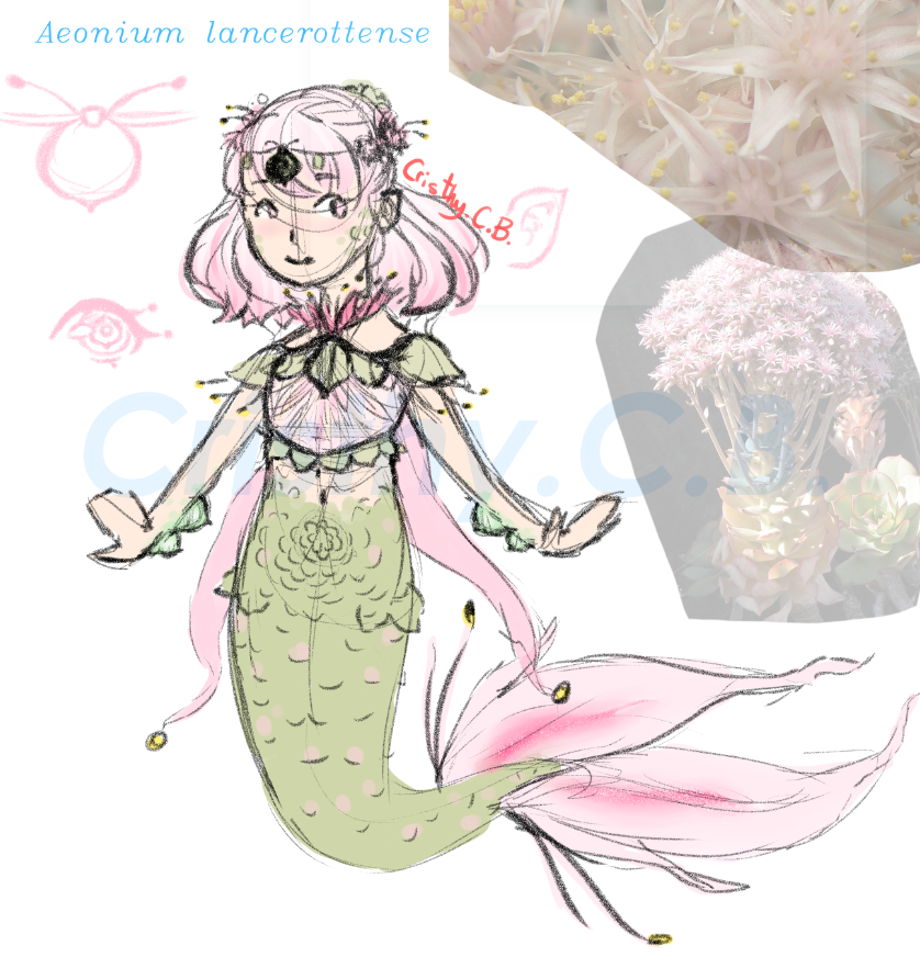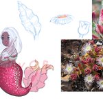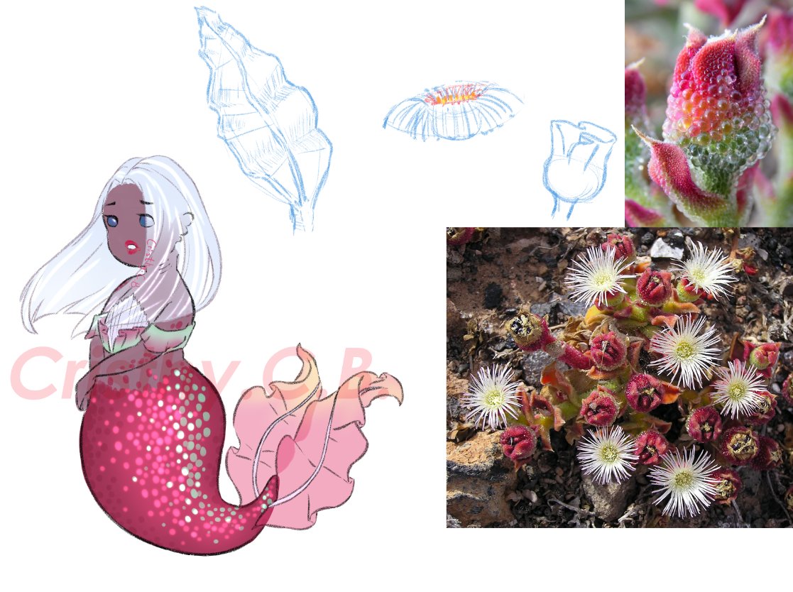 Here is a close up of the second mermaid!! (as well as sketches!). I didn't mentioned it in the main tweet but the scientific name is "Mesembryanthemum crystallium"🌱🌸 #mermay #mermaid #mermay2021 #sketch #originalcharacters twitter.com/Cristhy_CB/sta…