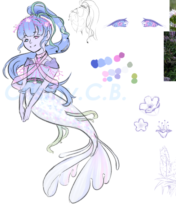 Finally, the last mermaid! There are some close ups!. The scientific name of the flowers is: "Echium callithyrsum Webb ex Bolle" (the blue one) and "Echium decaisnei Webb subsp. decaisnei." (the white one) #mermay #mermaid #sketch #originalcharacters twitter.com/Cristhy_CB/sta…