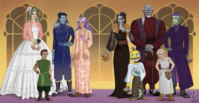A bit delayed, but the group portrait of the Tal'Dorei Council, my piece for @ExandriaArtists Tourist's Guide to Taldorei, IS DONE!!! This took forever but I'm really happy with the result and I hope you all like it! Closeups below! ⬇️ #criticalrolefanart #CriticalRole #tgtt