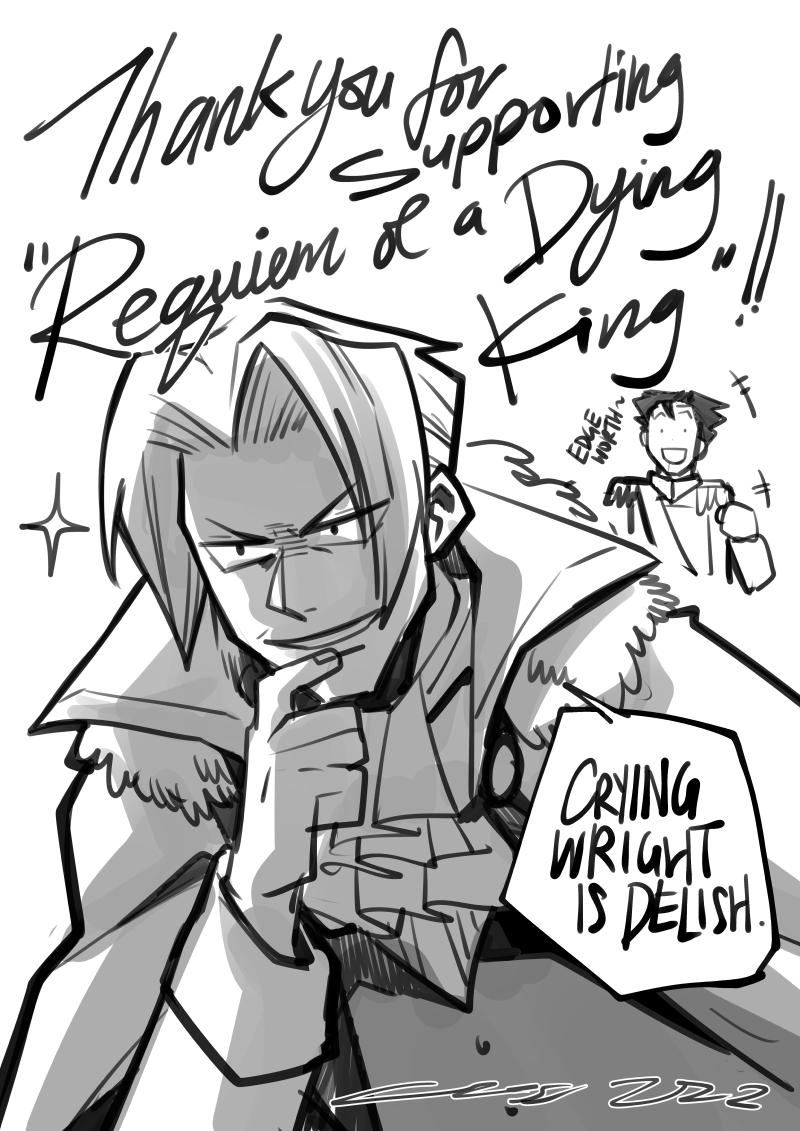 It's been awhile! Been both busy drawing and resting. "Requiem of A Dying King" physical exclusive teaser coming soon! Extra fluff with extra narumitsus, more delicious stuff on the way! I can't wait!