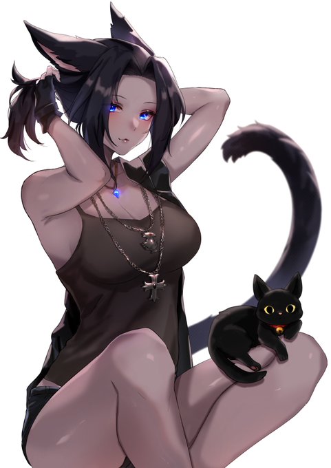 122 730 My fanart of @ Tos_Tantan's FFXIV WoL, Midd! 🖤 I'm in love with her piercing, ocean blue eyes and the laid back, chill vibe she has going on. 🖤🐈⬛ #FFXIV #FFXIVart 23/03/31 23:10