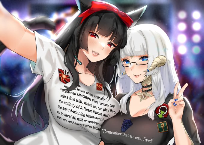 2 7 Cm for @/lorglaz! Akane and Aoi are ready for Fan Fest 2023! 🖤❤️✨💙🤍 #FFXIV #FFXIVart 23/04/18 01:02