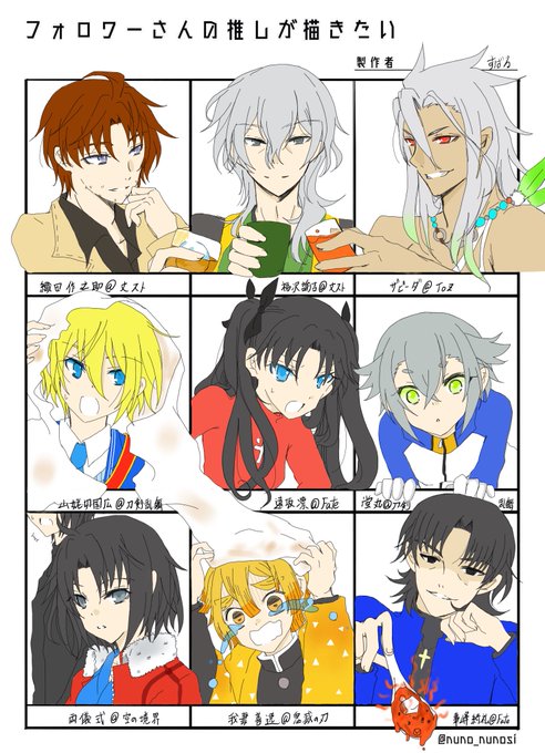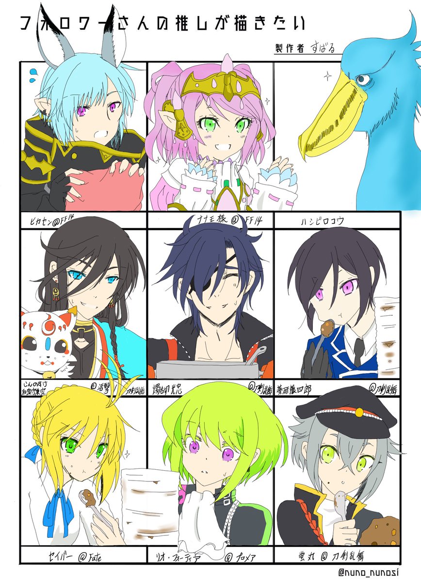 #フォロワーさんの推しが描きたい 遅くなりましたが完成しました〜!!(*´◒`*) 普段描いたことない子ばかりだったので新鮮で楽しかったです〜♪ ほぼ一発描きなのとまだツールに慣れてなくていつも以上に生暖かく見てもらえるとです〜(^◇^;)) 余った枠は描きたかった子描いてます笑